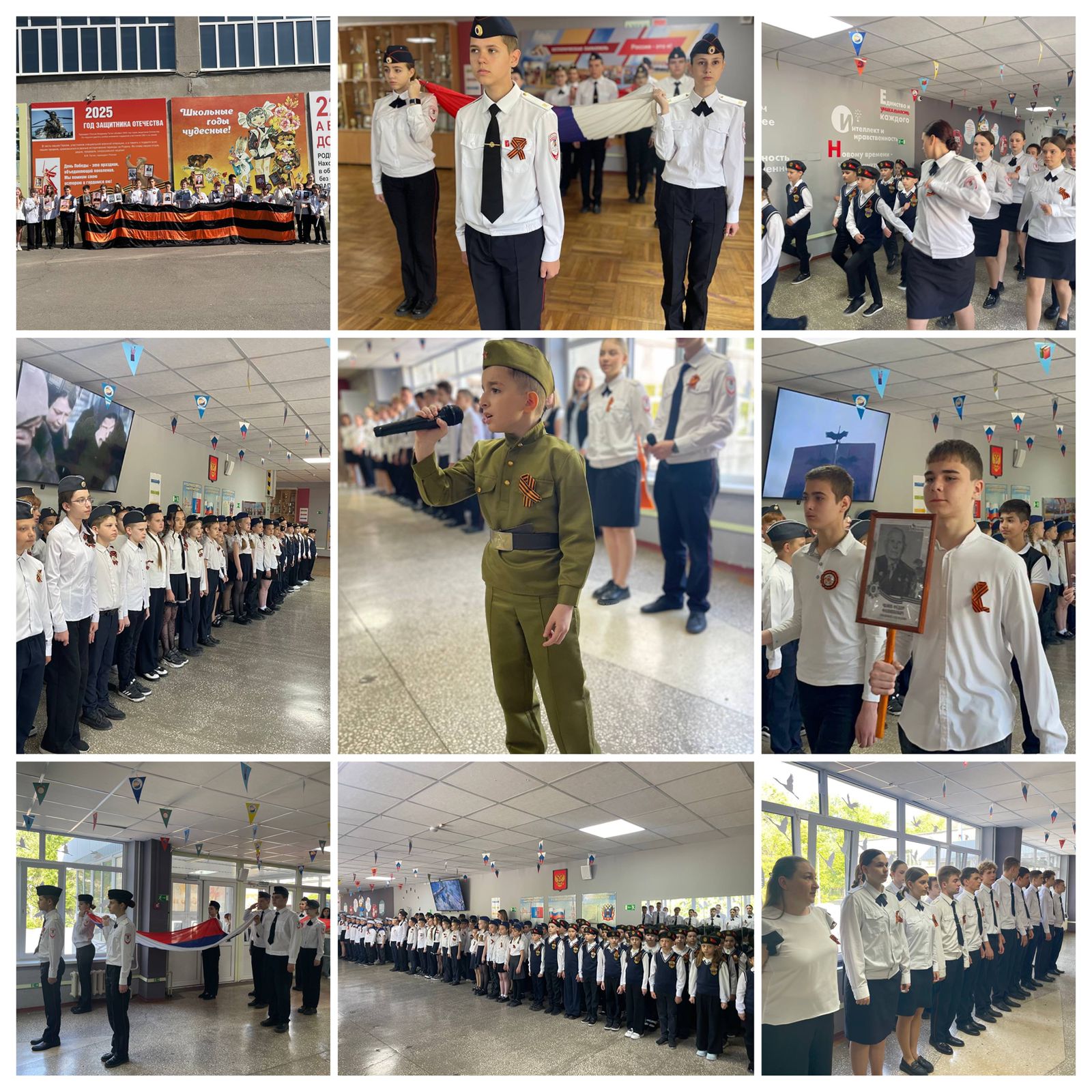 Участие в линейке и торжественном марше приняли победители школьного смотря строя и песни, Орлята России 2а, 3д, 4а, 4г классов, и обучающиеся 5.1п и 6в классов. Обучающиеся 9.1 полицейского класса водрузили флаг Российской Федерации и знамя Победы. Поздравил песней «День победы» участников линейки Арутюнян Арсен.