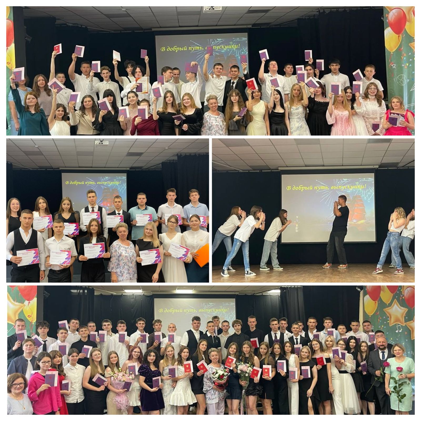 Поздравили ребят с получением первого документа об образовании директор школы Татьяна Михайловна Камышная, классные руководители Лариса Дмитриевна Репникова, Андрей Артурович Бауэр, Наталья Сергеевна Мельникова, Алина Игоревна Чигвинцева, советники директора по воспитанию Оксана Александровна Чебанова, Анна Андреевна Мацко, а также неожиданным сюрпризом, песней, мама выпускницы, Анна Карленовна Алиханян!