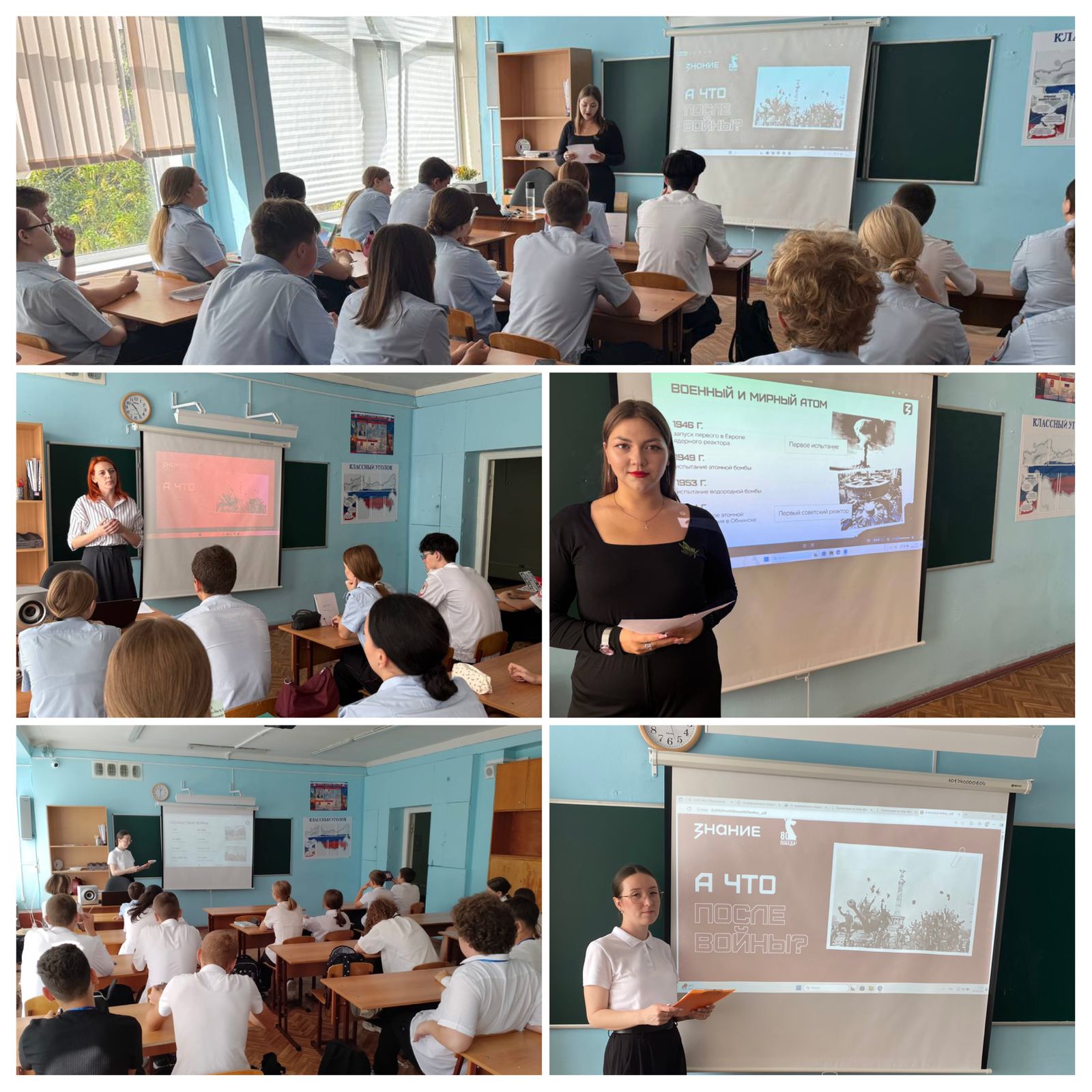 В день воинской славы в МБОУ «Школа N86» состоялись лекции «А что после войны?», организованные советниками директора по воспитанию Оксаной Александровной Чебановой, Анной Андреевной Мацко и руководителями школьного музея «Память» Мариной Григорьевной Костоглот и Ксенией Дмитриевной Маркевич. В формате лекции обучающиеся с педагогами обсудили последствия войны для СССР и перевод страны на мирные рельсы.
